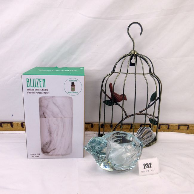 Current Bid: $11.00 [Refresh Price]YOU WILL NEED TO REFRESH THIS PAGE TO SEE UPDATED BID (Log in and this will update automatically) You must LOG IN or REGISTER to see this full page auction listing and bid. Auction is Over Winning Bid Amount: $11.00 **Lot Details: (232i) - Bluzen portable diffuser in marble glass bird motif candle holder, metal bird cage Log in to add this lot to your watch list or place a bid |