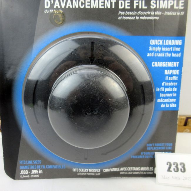 Current Bid: $5.00 [Refresh Price]YOU WILL NEED TO REFRESH THIS PAGE TO SEE UPDATED BID (Log in and this will update automatically) You must LOG IN or REGISTER to see this full page auction listing and bid. Auction is Over Winning Bid Amount: $5.00 **Lot Details: (233i) - Wind n Go bump trimmer head Log in to add this lot to your watch list or place a bid |