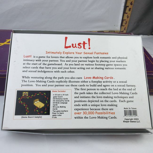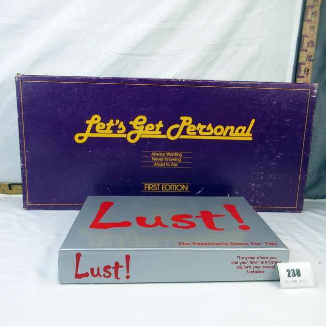 Current Bid: $5.00 [Refresh Price]YOU WILL NEED TO REFRESH THIS PAGE TO SEE UPDATED BID (Log in and this will update automatically) You must LOG IN or REGISTER to see this full page auction listing and bid. Auction is Over Winning Bid Amount: $5.00 **Lot Details: (238i) - Lust board game 10" x 14"{, first edition Let's Get Personal board game Log in to add this lot to your watch list or place a bid |