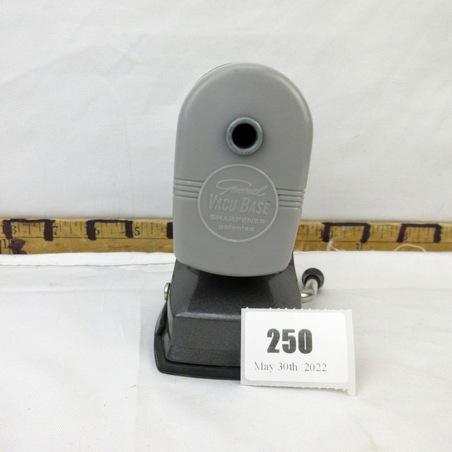 Current Bid: $5.00 [Refresh Price]YOU WILL NEED TO REFRESH THIS PAGE TO SEE UPDATED BID (Log in and this will update automatically) You must LOG IN or REGISTER to see this full page auction listing and bid. Auction is Over Winning Bid Amount: $5.00 **Lot Details: (250i) - Working General Vacu Base sharpener Log in to add this lot to your watch list or place a bid |