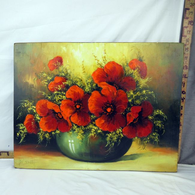 Current Bid: $39.06 [Refresh Price]YOU WILL NEED TO REFRESH THIS PAGE TO SEE UPDATED BID (Log in and this will update automatically) You must LOG IN or REGISTER to see this full page auction listing and bid. Auction is Over Winning Bid Amount: $39.06 **Lot Details: (256i) - Vintage floral oil painting signed on slab of solid wood. 15" x 20" Log in to add this lot to your watch list or place a bid |