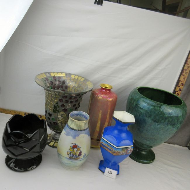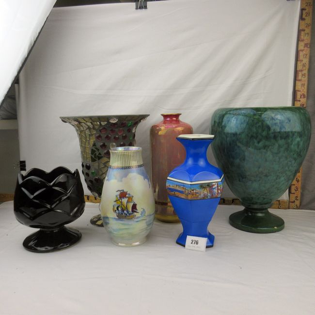 Current Bid: $5.00 [Refresh Price]YOU WILL NEED TO REFRESH THIS PAGE TO SEE UPDATED BID (Log in and this will update automatically) You must LOG IN or REGISTER to see this full page auction listing and bid. Auction is Over Winning Bid Amount: $5.00 **Lot Details: (276i) - 6 assorted vases including McCoy US 6.5", large green (small chip on base) 11.5"H x 9" round US. Coronet England 8"H x 5" round, multi coloured glass 10.5" x 9" round Log in to add this lot to your watch list or place a bid |