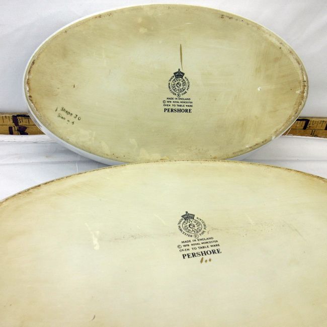 Current Bid: $5.00 [Refresh Price]YOU WILL NEED TO REFRESH THIS PAGE TO SEE UPDATED BID (Log in and this will update automatically) You must LOG IN or REGISTER to see this full page auction listing and bid. Auction is Over Winning Bid Amount: $5.00 **Lot Details: (277i) - 2 Royal Worcester oven to tableware serving dishes 12"L x 2"D x 7.5"W and 10.5"L x 6"W x 2"D Log in to add this lot to your watch list or place a bid |