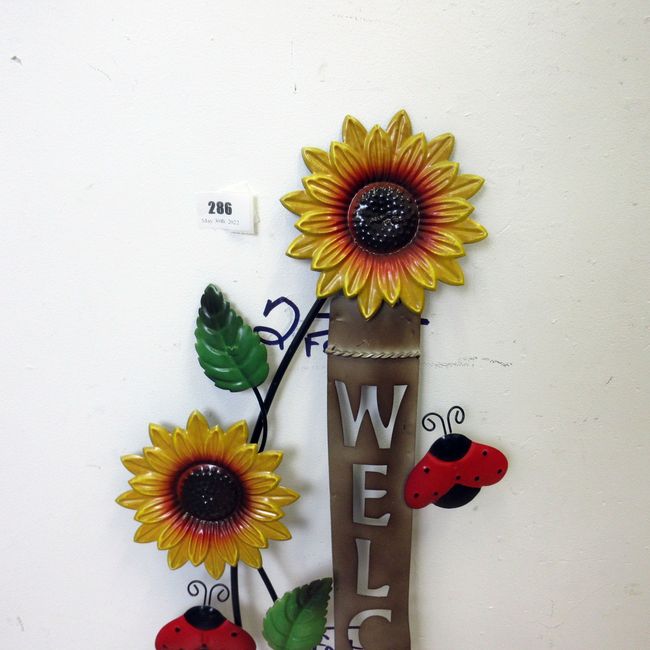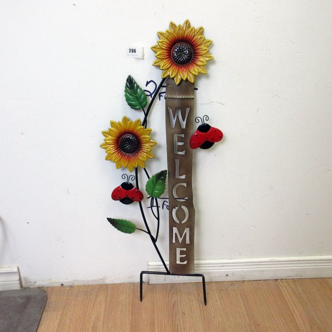 Current Bid: $27.25 [Refresh Price]YOU WILL NEED TO REFRESH THIS PAGE TO SEE UPDATED BID (Log in and this will update automatically) You must LOG IN or REGISTER to see this full page auction listing and bid. Auction is Over Winning Bid Amount: $27.25 **Lot Details: (286i) - Welcome metal garden stake, Sunflower and Ladybug motif 30"H x 13"W Log in to add this lot to your watch list or place a bid |