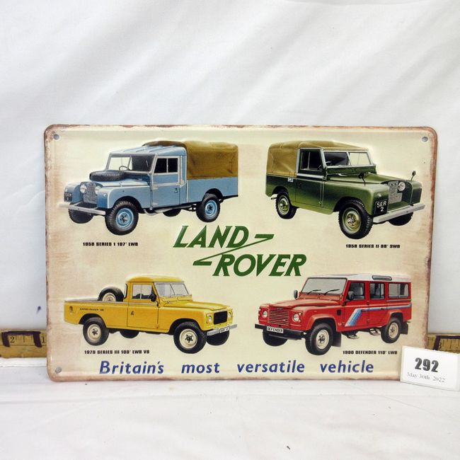 Current Bid: $5.00 [Refresh Price]YOU WILL NEED TO REFRESH THIS PAGE TO SEE UPDATED BID (Log in and this will update automatically) You must LOG IN or REGISTER to see this full page auction listing and bid. Auction is Over Winning Bid Amount: $5.00 **Lot Details: (292i) - Metal sign, Land Rover collection 11.5"L x 7.5"H Log in to add this lot to your watch list or place a bid |