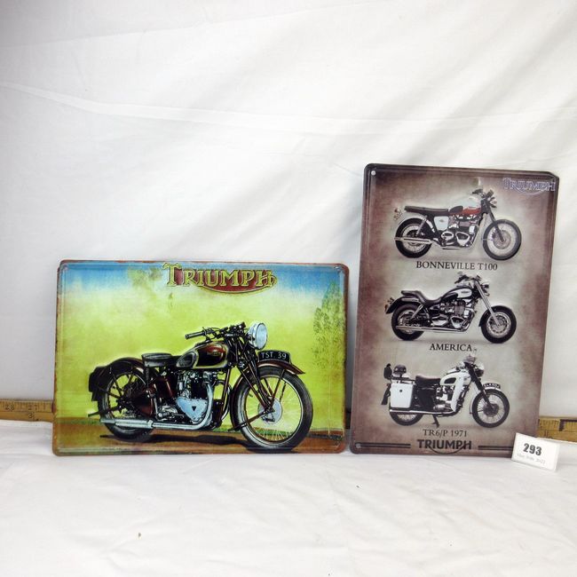 Current Bid: $5.00 [Refresh Price]YOU WILL NEED TO REFRESH THIS PAGE TO SEE UPDATED BID (Log in and this will update automatically) You must LOG IN or REGISTER to see this full page auction listing and bid. Auction is Over Winning Bid Amount: $5.00 **Lot Details: (293i) - 2 metal Triumph signs, detail and colours top quality. 11.5" x 7.5" Log in to add this lot to your watch list or place a bid |