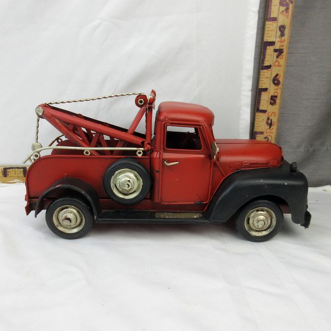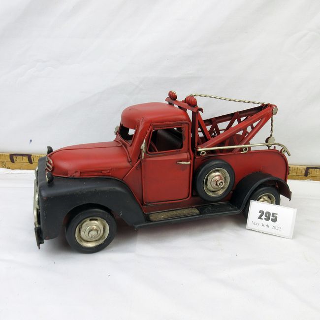 Current Bid: $20.00 [Refresh Price]YOU WILL NEED TO REFRESH THIS PAGE TO SEE UPDATED BID (Log in and this will update automatically) You must LOG IN or REGISTER to see this full page auction listing and bid. Auction is Over Winning Bid Amount: $20.00 **Lot Details: (295i) - Metal Ford tow truck, vintage look, great detail 10.5"L x 5"H x 4"D Log in to add this lot to your watch list or place a bid |