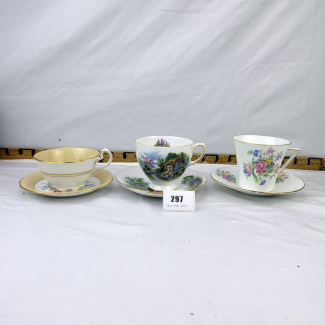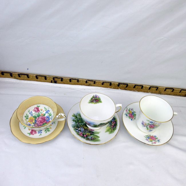 Current Bid: $5.00 [Refresh Price]YOU WILL NEED TO REFRESH THIS PAGE TO SEE UPDATED BID (Log in and this will update automatically) You must LOG IN or REGISTER to see this full page auction listing and bid. Auction is Over Winning Bid Amount: $5.00 **Lot Details: (297i) - 3 vintage bone china tea cups/saucers in mint condition. Royal Vale/English Cottage, lovely Queen Anne has central floral motif in cup, Windsor England, numbered Log in to add this lot to your watch list or place a bid |