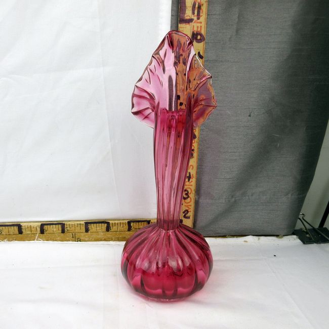 Current Bid: $21.00 [Refresh Price]YOU WILL NEED TO REFRESH THIS PAGE TO SEE UPDATED BID (Log in and this will update automatically) You must LOG IN or REGISTER to see this full page auction listing and bid. Auction is Over Winning Bid Amount: $21.00 **Lot Details: (320i) - Beautiful handmade drawn pink glass vase with flared top. Great condition. Log in to add this lot to your watch list or place a bid |