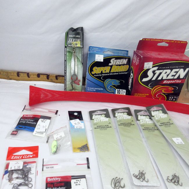 Current Bid: $30.00 [Refresh Price]YOU WILL NEED TO REFRESH THIS PAGE TO SEE UPDATED BID (Log in and this will update automatically) You must LOG IN or REGISTER to see this full page auction listing and bid. Auction is Over Winning Bid Amount: $30.00 **Lot Details: (357i) - Large assortment of Brand New fishing tackle and lures. 20pcs included. Log in to add this lot to your watch list or place a bid |