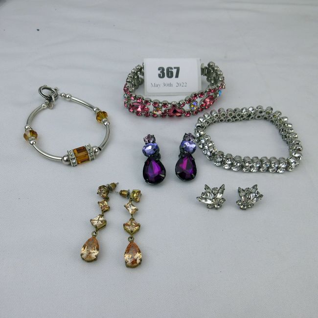 Current Bid: $7.00 [Refresh Price]YOU WILL NEED TO REFRESH THIS PAGE TO SEE UPDATED BID (Log in and this will update automatically) You must LOG IN or REGISTER to see this full page auction listing and bid. Auction is Over Winning Bid Amount: $7.00 **Lot Details: (367i) - Very nice lot of vintage rhinestone jewellery. All ready to wear for any occasion. Log in to add this lot to your watch list or place a bid |