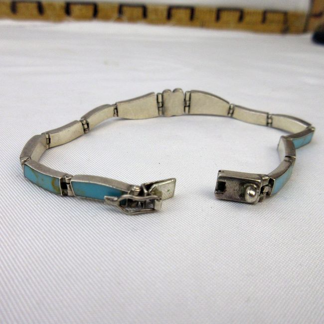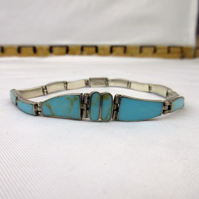 Current Bid: $37.01 [Refresh Price]YOU WILL NEED TO REFRESH THIS PAGE TO SEE UPDATED BID (Log in and this will update automatically) You must LOG IN or REGISTER to see this full page auction listing and bid. Auction is Over Winning Bid Amount: $37.01 **Lot Details: (375i) - A fantastic vintage robins egg blue natural turquoise sterling silver bracelet. Desirable quality blue turquoise. Marked sterling silver Log in to add this lot to your watch list or place a bid |