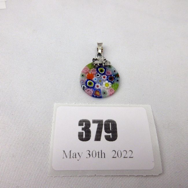 Current Bid: $20.05 [Refresh Price]YOU WILL NEED TO REFRESH THIS PAGE TO SEE UPDATED BID (Log in and this will update automatically) You must LOG IN or REGISTER to see this full page auction listing and bid. Auction is Over Winning Bid Amount: $20.05 **Lot Details: (379i) - A very nice vintage Italian Murano glass millefiori pendant mounted with sterling silver. Italian silver hallmarked. Log in to add this lot to your watch list or place a bid |