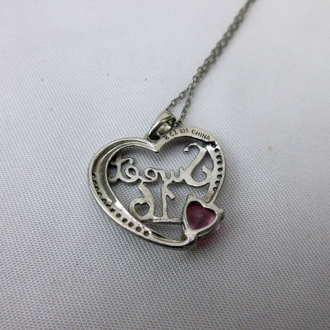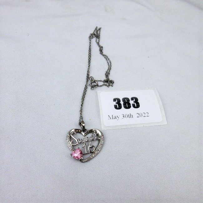 Current Bid: $22.00 [Refresh Price]YOU WILL NEED TO REFRESH THIS PAGE TO SEE UPDATED BID (Log in and this will update automatically) You must LOG IN or REGISTER to see this full page auction listing and bid. Auction is Over Winning Bid Amount: $22.00 **Lot Details: (383i) - A cute “Sweet 16” sterling silver and pink sapphire pendant with sterling silver necklace. Both marked sterling silver Log in to add this lot to your watch list or place a bid |