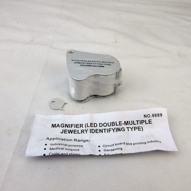 Current Bid: $19.00 [Refresh Price]YOU WILL NEED TO REFRESH THIS PAGE TO SEE UPDATED BID (Log in and this will update automatically) You must LOG IN or REGISTER to see this full page auction listing and bid. Auction is Over Winning Bid Amount: $19.00 **Lot Details: (387i) - A brand new top quality jewellers loupe. Double lens 30x and 60x magnification. Dual LED lights Log in to add this lot to your watch list or place a bid |