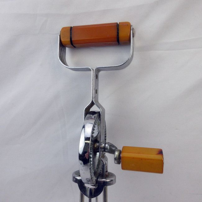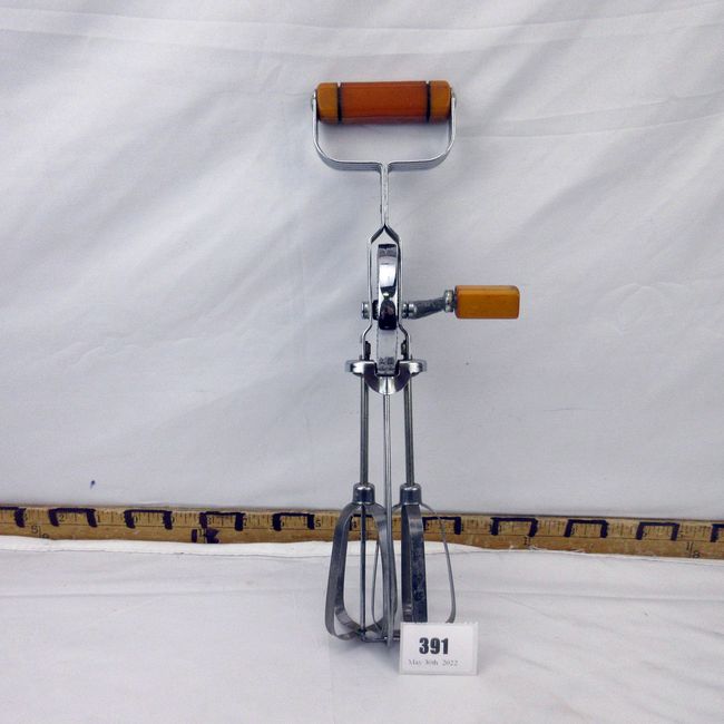 Current Bid: $25.00 [Refresh Price]YOU WILL NEED TO REFRESH THIS PAGE TO SEE UPDATED BID (Log in and this will update automatically) You must LOG IN or REGISTER to see this full page auction listing and bid. Auction is Over Winning Bid Amount: $25.00 **Lot Details: (391i) - A fantastic vintage Butterscotch egg yolk Bakelite hand mixer. Very uncommon pieces to have such desirable Bakelite handles. A vintage collectors dream Log in to add this lot to your watch list or place a bid |