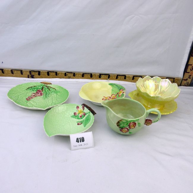 Current Bid: $7.00 [Refresh Price]YOU WILL NEED TO REFRESH THIS PAGE TO SEE UPDATED BID (Log in and this will update automatically) You must LOG IN or REGISTER to see this full page auction listing and bid. Auction is Over Winning Bid Amount: $7.00 **Lot Details: (410i) - 4 Carltonware dishes. Largest 5 1/2" x 5 1/4", tiny nick on rim of yellow dish. Royal Winton yellow lustre bowl 2 3/4"H x 4" Log in to add this lot to your watch list or place a bid |
