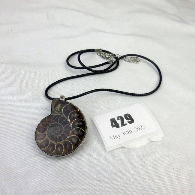Current Bid: $16.00 [Refresh Price]YOU WILL NEED TO REFRESH THIS PAGE TO SEE UPDATED BID (Log in and this will update automatically) You must LOG IN or REGISTER to see this full page auction listing and bid. Auction is Over Winning Bid Amount: $16.00 **Lot Details: (429i) - 1 1/2" Ammonite fossil pendant Log in to add this lot to your watch list or place a bid |
