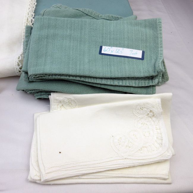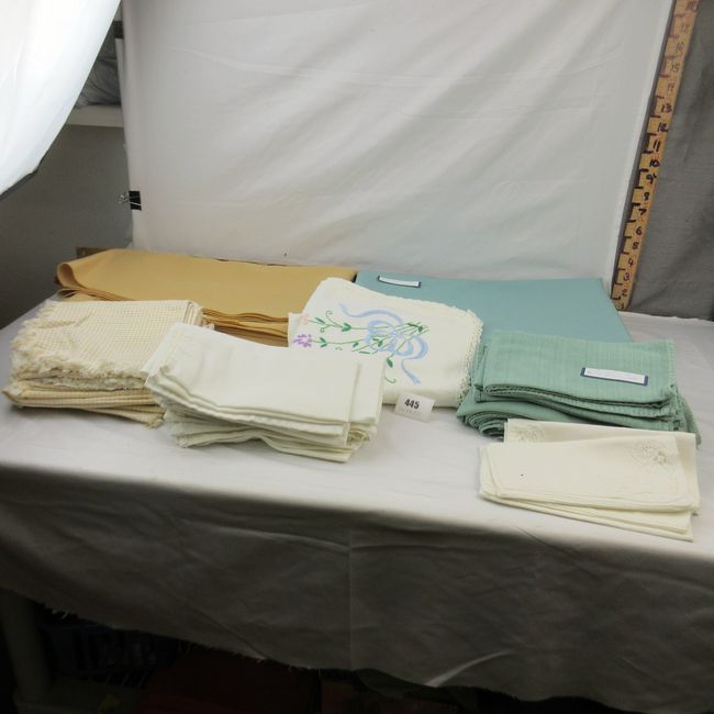 Current Bid: $12.00 [Refresh Price]YOU WILL NEED TO REFRESH THIS PAGE TO SEE UPDATED BID (Log in and this will update automatically) You must LOG IN or REGISTER to see this full page auction listing and bid. Auction is Over Winning Bid Amount: $12.00 **Lot Details: (445i) - Green 8'x4' tablecloth, 12 green napkins, gold 8'x4' tablecloth, 12 gold napkins, 11 plain white napkins, 4 white cut embroidery napkins Log in to add this lot to your watch list or place a bid |