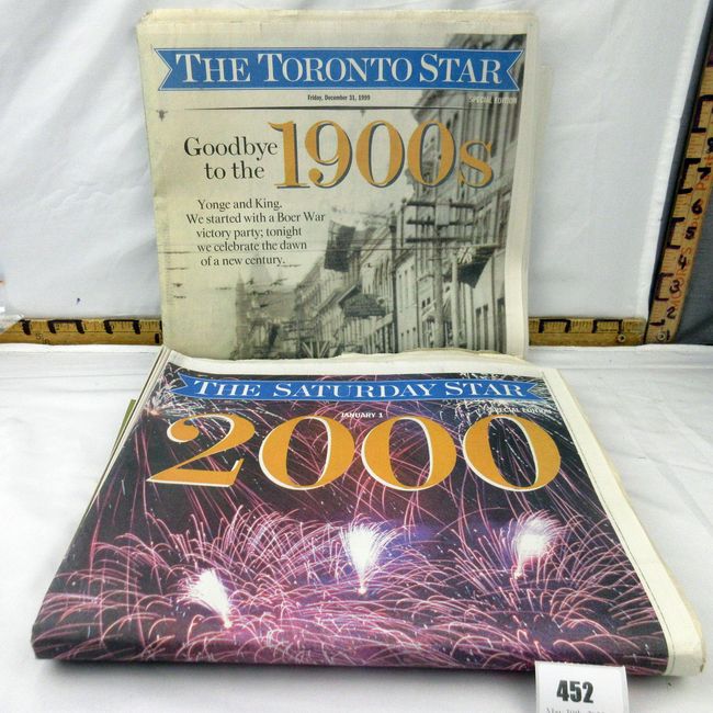 Current Bid: $5.00 [Refresh Price]YOU WILL NEED TO REFRESH THIS PAGE TO SEE UPDATED BID (Log in and this will update automatically) You must LOG IN or REGISTER to see this full page auction listing and bid. Auction is Over Winning Bid Amount: $5.00 **Lot Details: (452i) - Toronto Star millennium issues Dec 31/1999 and Jan 1/2000 Log in to add this lot to your watch list or place a bid |