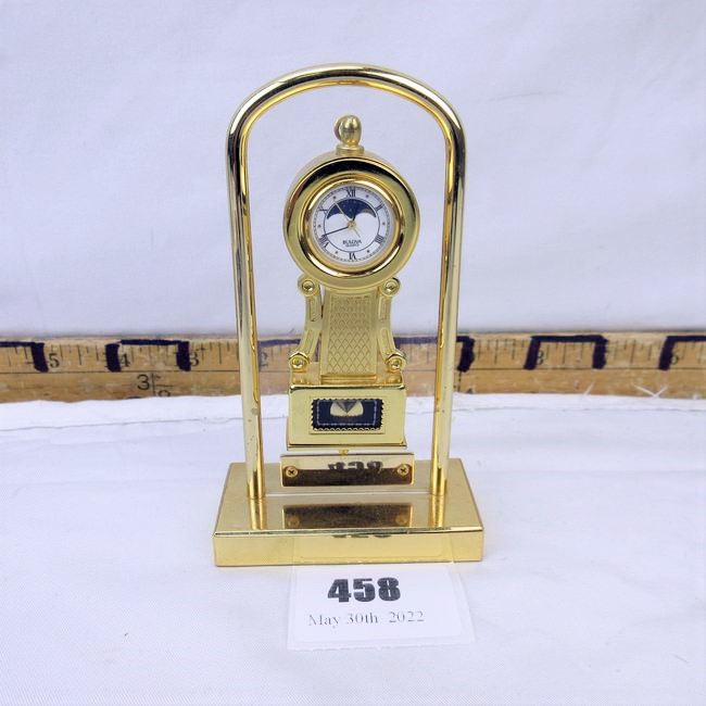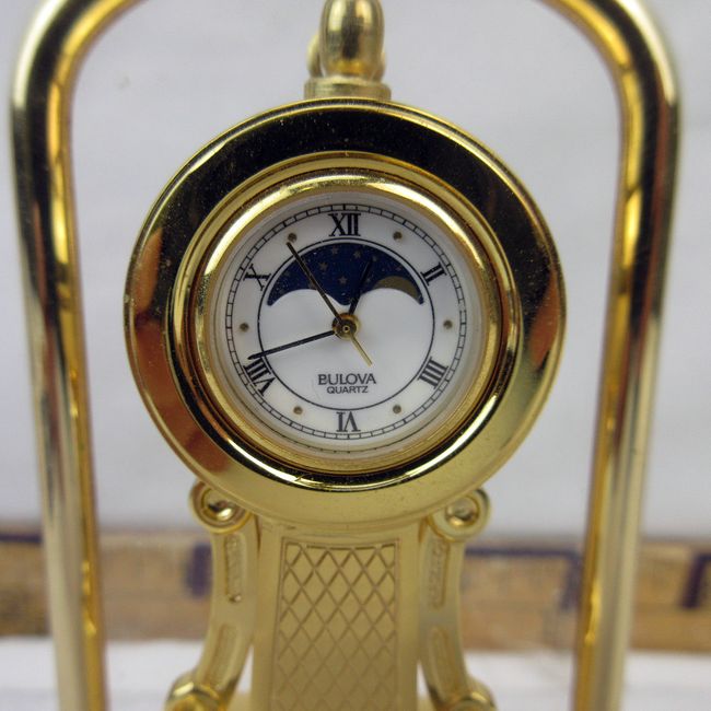 Current Bid: $5.00 [Refresh Price]YOU WILL NEED TO REFRESH THIS PAGE TO SEE UPDATED BID (Log in and this will update automatically) You must LOG IN or REGISTER to see this full page auction listing and bid. Auction is Over Winning Bid Amount: $5.00 **Lot Details: (458i) - Miniature Bulova wall clock Log in to add this lot to your watch list or place a bid |