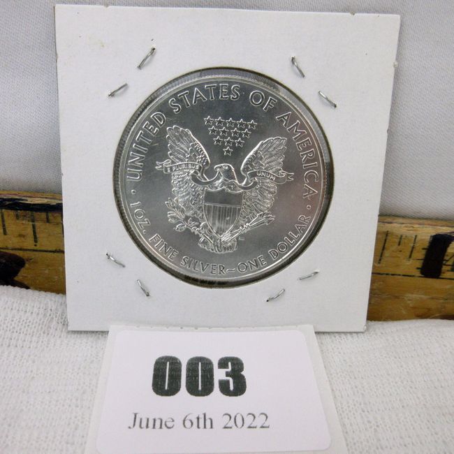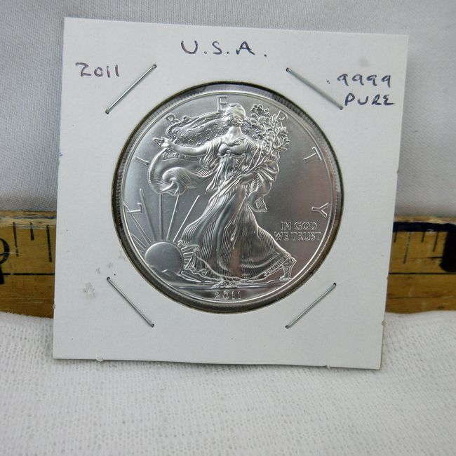 Current Bid: $45.00 [Refresh Price]YOU WILL NEED TO REFRESH THIS PAGE TO SEE UPDATED BID (Log in and this will update automatically) You must LOG IN or REGISTER to see this full page auction listing and bid. Auction is Over Winning Bid Amount: $45.00 **Lot Details: (3j) - USA 2011 One Ounce Pure Silver Eagle coin. Mint coin from Mint roll. .9999 Pure Silver Log in to add this lot to your watch list or place a bid |