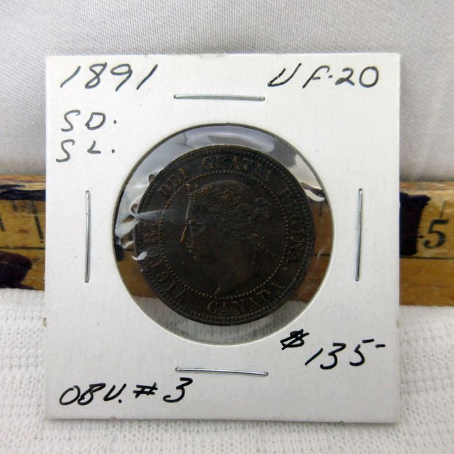 Current Bid: $84.50 [Refresh Price]YOU WILL NEED TO REFRESH THIS PAGE TO SEE UPDATED BID (Log in and this will update automatically) You must LOG IN or REGISTER to see this full page auction listing and bid. Auction is Over Winning Bid Amount: $84.50 **Lot Details: (7j) - Canada 1891 Victorian Large Cent. Small date, small leaves, obverse #3. Gorgeous large cent with amazing detail Log in to add this lot to your watch list or place a bid |