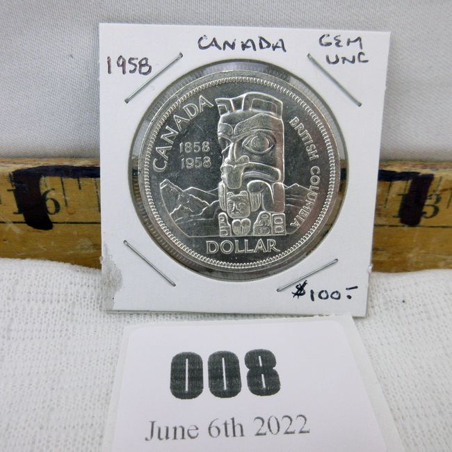 Current Bid: $37.05 [Refresh Price]YOU WILL NEED TO REFRESH THIS PAGE TO SEE UPDATED BID (Log in and this will update automatically) You must LOG IN or REGISTER to see this full page auction listing and bid. Auction is Over Winning Bid Amount: $37.05 **Lot Details: (8j) - Canada 1958 Silver Dollar. Absolute gem, mint form mint roll Log in to add this lot to your watch list or place a bid |