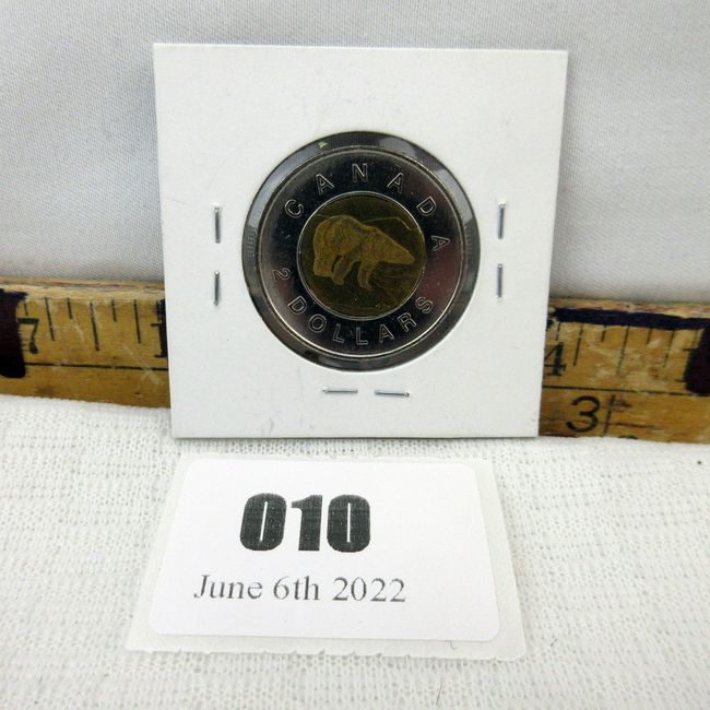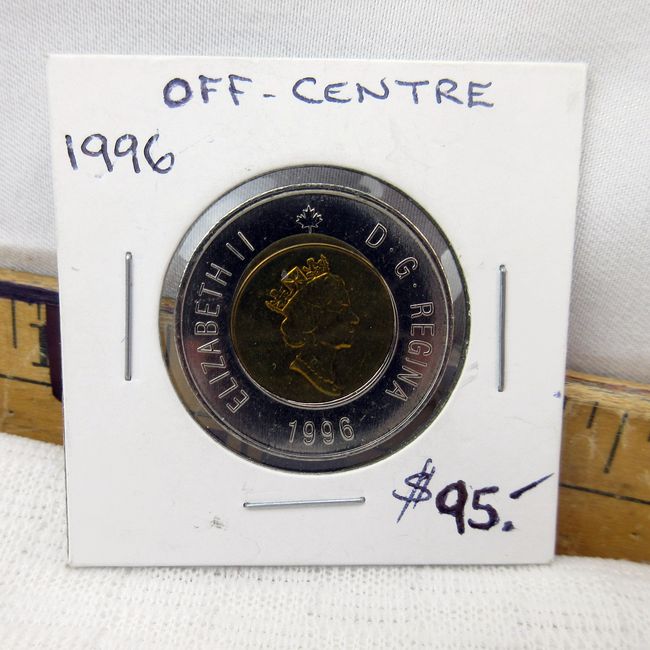 Current Bid: $86.00 [Refresh Price]YOU WILL NEED TO REFRESH THIS PAGE TO SEE UPDATED BID (Log in and this will update automatically) You must LOG IN or REGISTER to see this full page auction listing and bid. Auction is Over Winning Bid Amount: $86.00 **Lot Details: (10j) - Canada 1996 Tooniem, error coin. The core is struck off centre from the centre of the coin. Very rare Log in to add this lot to your watch list or place a bid |