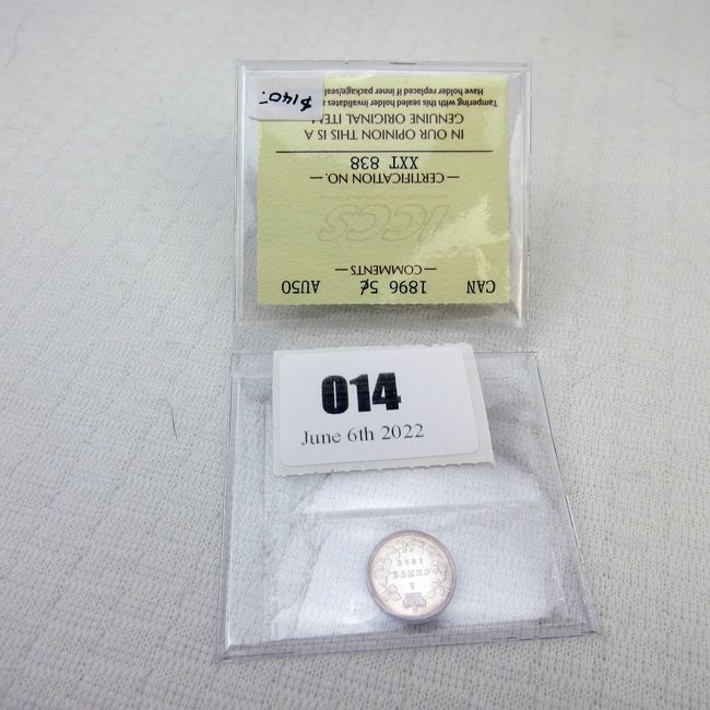 Current Bid: $97.10 [Refresh Price]YOU WILL NEED TO REFRESH THIS PAGE TO SEE UPDATED BID (Log in and this will update automatically) You must LOG IN or REGISTER to see this full page auction listing and bid. Auction is Over Winning Bid Amount: $97.10 **Lot Details: (14j) - Canada 1896 Silver 5 Cent piece, ICCS certified AU-50. Gorgeous Victorian 5 Cent with perfect detail Log in to add this lot to your watch list or place a bid |