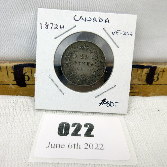Current Bid: $42.00 [Refresh Price]YOU WILL NEED TO REFRESH THIS PAGE TO SEE UPDATED BID (Log in and this will update automatically) You must LOG IN or REGISTER to see this full page auction listing and bid. Auction is Over Winning Bid Amount: $42.00 **Lot Details: (22i) - Canada 1872H Silver Quarter. Beautiful Victorian Quarter with full detail and light toning Log in to add this lot to your watch list or place a bid |