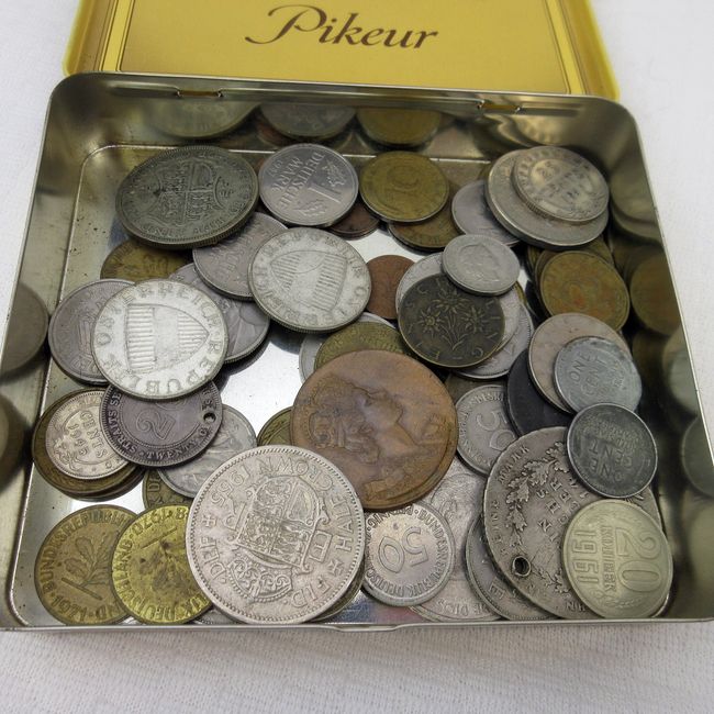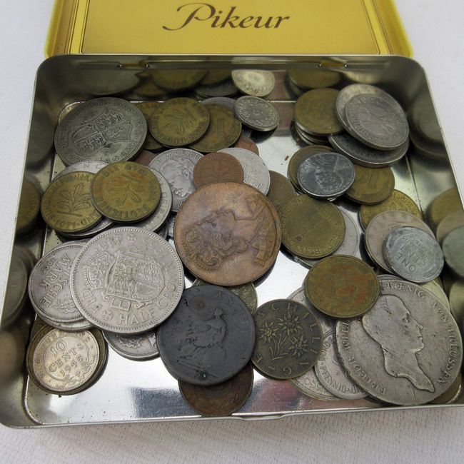 Current Bid: $62.00 [Refresh Price]YOU WILL NEED TO REFRESH THIS PAGE TO SEE UPDATED BID (Log in and this will update automatically) You must LOG IN or REGISTER to see this full page auction listing and bid. Auction is Over Winning Bid Amount: $62.00 **Lot Details: (24j) - Old metal cigar box full of world coins. Many large silver coins, 1814 Thaler, 1917 Newfoundland 25 Cent, Austria, Cuba etc Log in to add this lot to your watch list or place a bid |