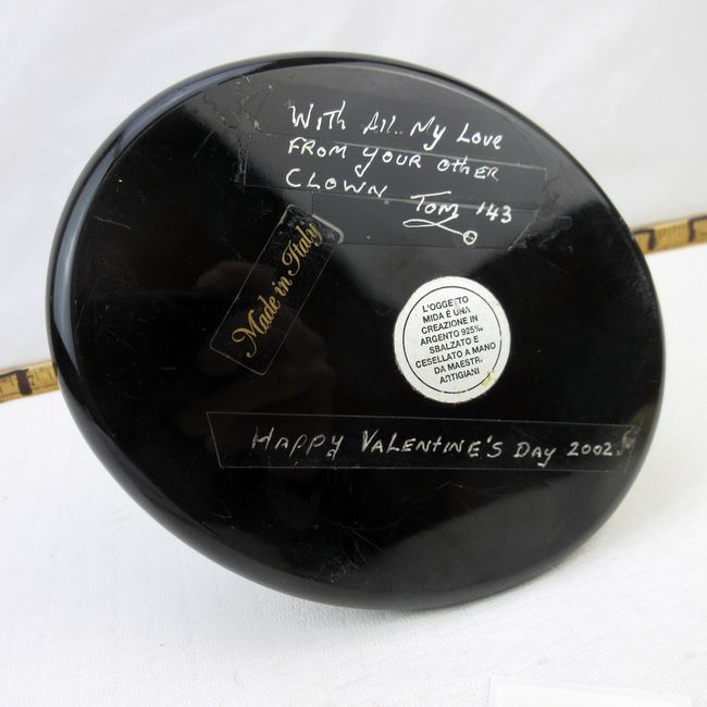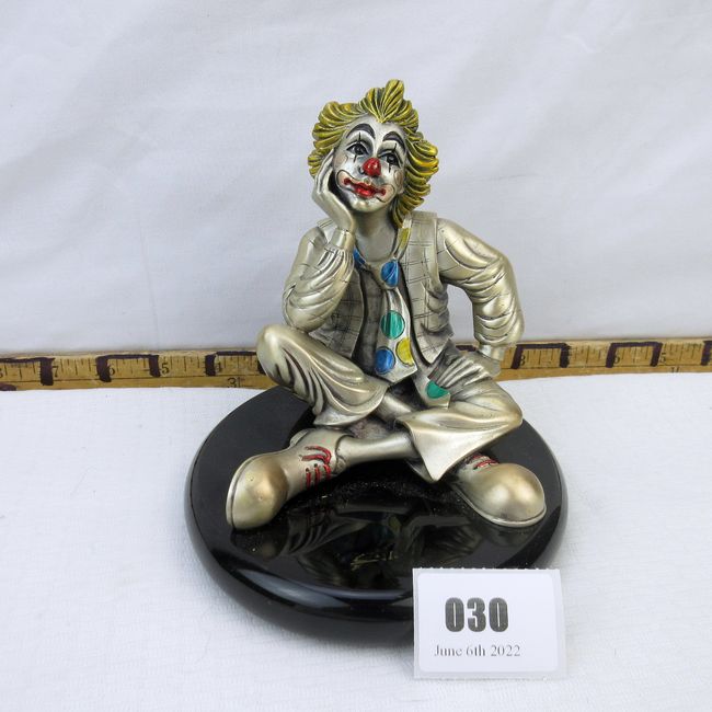 Current Bid: $7.00 [Refresh Price]YOU WILL NEED TO REFRESH THIS PAGE TO SEE UPDATED BID (Log in and this will update automatically) You must LOG IN or REGISTER to see this full page auction listing and bid. Auction is Over Winning Bid Amount: $7.00 **Lot Details: (30j) - Vintage Mida's 925 silver and resin Clown sculpture. Handmade Italian Mida Argento seated Clown, bottom marked. 6" tall. Awesome Log in to add this lot to your watch list or place a bid |