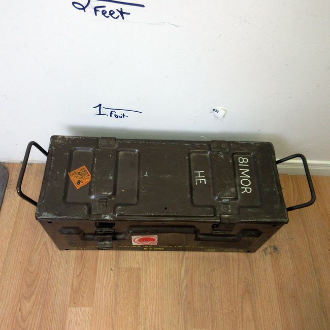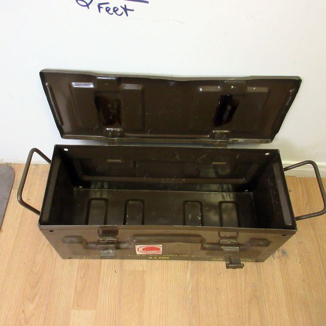 Current Bid: $51.01 [Refresh Price]YOU WILL NEED TO REFRESH THIS PAGE TO SEE UPDATED BID (Log in and this will update automatically) You must LOG IN or REGISTER to see this full page auction listing and bid. Auction is Over Winning Bid Amount: $51.01 **Lot Details: (31j) - Nice old UK government explosive MOD Army metal container box. Hinged top, carry handles, good size for many things. 23" x 10.5" x 9.5" Log in to add this lot to your watch list or place a bid |