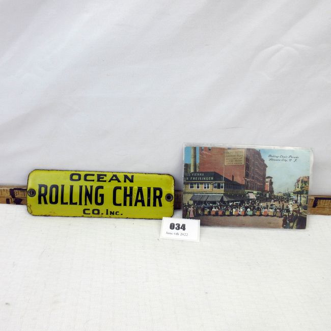 Current Bid: $41.02 [Refresh Price]YOU WILL NEED TO REFRESH THIS PAGE TO SEE UPDATED BID (Log in and this will update automatically) You must LOG IN or REGISTER to see this full page auction listing and bid. Auction is Over Winning Bid Amount: $41.02 **Lot Details: (34j) - So this is rare. Antique Atlantic City Rolling Chair porcelain badge. Amazing 1920's memorabilia. the famous rolling chairs are an iconic part of Atlantic City Boardwalk. 6.5" x 2.25" heavy convex plate. Also included is an original 1927 Log in to add this lot to your watch list or place a bid |