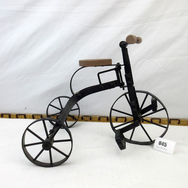 Current Bid: $43.00 [Refresh Price]YOU WILL NEED TO REFRESH THIS PAGE TO SEE UPDATED BID (Log in and this will update automatically) You must LOG IN or REGISTER to see this full page auction listing and bid. Auction is Over Winning Bid Amount: $43.00 **Lot Details: (45j) - Nice cast iron and wood tricycle. Really nice condition with moving wheels. Decor. Approx 12" x 9" x 8" Log in to add this lot to your watch list or place a bid |