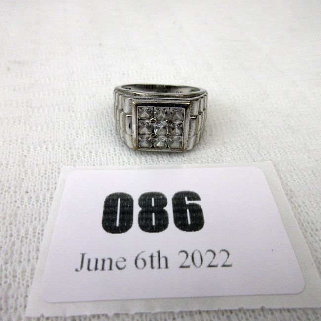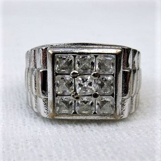 Current Bid: $9.25 [Refresh Price]YOU WILL NEED TO REFRESH THIS PAGE TO SEE UPDATED BID (Log in and this will update automatically) You must LOG IN or REGISTER to see this full page auction listing and bid. Auction is Over Winning Bid Amount: $9.25 **Lot Details: (86j) - Spectacular Sterling Silver 9 flashy stone Unisex Ring signed BCN, stones untested, Father's Day Alert ! Log in to add this lot to your watch list or place a bid |