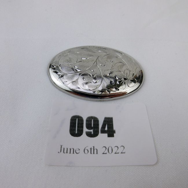Current Bid: $7.00 [Refresh Price]YOU WILL NEED TO REFRESH THIS PAGE TO SEE UPDATED BID (Log in and this will update automatically) You must LOG IN or REGISTER to see this full page auction listing and bid. Auction is Over Winning Bid Amount: $7.00 **Lot Details: (94j) - 1 3/4" Forstner Sterling Silver oval etched designed Brooch Log in to add this lot to your watch list or place a bid |