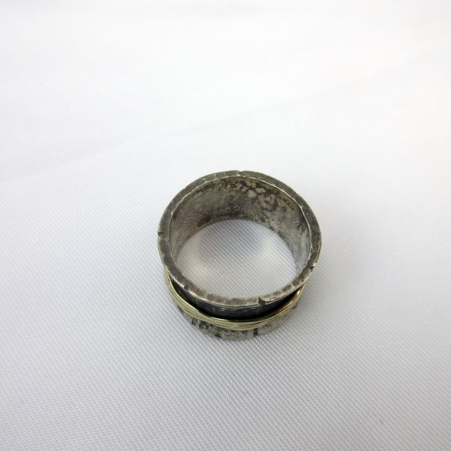 Current Bid: $26.00 [Refresh Price]YOU WILL NEED TO REFRESH THIS PAGE TO SEE UPDATED BID (Log in and this will update automatically) You must LOG IN or REGISTER to see this full page auction listing and bid. Auction is Over Winning Bid Amount: $26.00 **Lot Details: (110j) - A great looking vintage sterling silver wide band ring with gold band that spins. Consignor is unsure if the gold band is solid gold or gold over silver. Log in to add this lot to your watch list or place a bid |