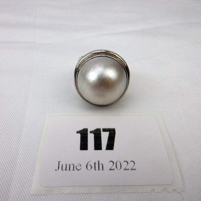 Current Bid: $37.33 [Refresh Price]YOU WILL NEED TO REFRESH THIS PAGE TO SEE UPDATED BID (Log in and this will update automatically) You must LOG IN or REGISTER to see this full page auction listing and bid. Auction is Over Winning Bid Amount: $37.33 **Lot Details: (117j) - A vintage sterling silver ring set with a large Mabe pearl. Truly an outstanding piece of jewelry! Log in to add this lot to your watch list or place a bid |