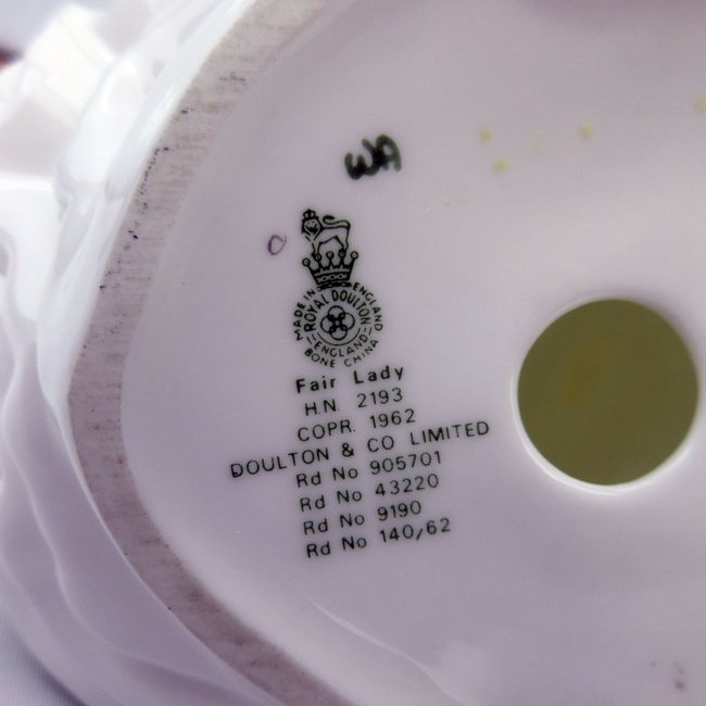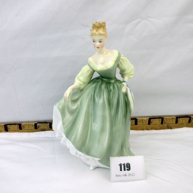 Current Bid: $27.50 [Refresh Price]YOU WILL NEED TO REFRESH THIS PAGE TO SEE UPDATED BID (Log in and this will update automatically) You must LOG IN or REGISTER to see this full page auction listing and bid. Auction is Over Winning Bid Amount: $27.50 **Lot Details: (119j) - Royal Doulton Fair Lady HN 2193 COPR 1962 made in England. Excellent condition. Log in to add this lot to your watch list or place a bid |