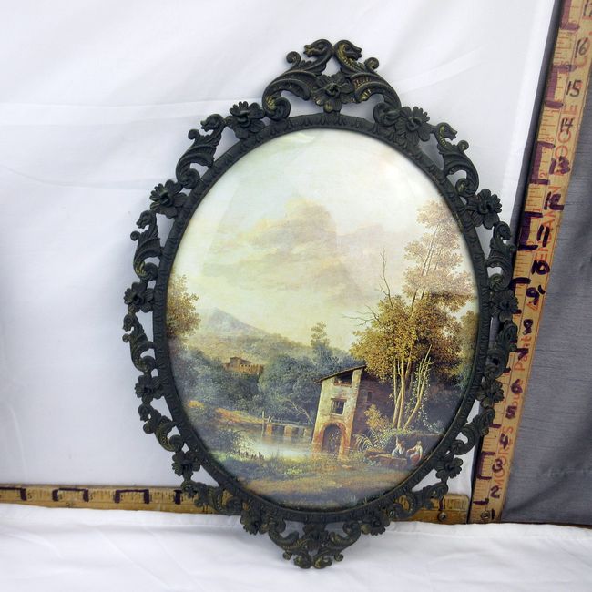 Current Bid: $9.00 [Refresh Price]YOU WILL NEED TO REFRESH THIS PAGE TO SEE UPDATED BID (Log in and this will update automatically) You must LOG IN or REGISTER to see this full page auction listing and bid. Auction is Over Winning Bid Amount: $9.00 **Lot Details: (124j) - A pair of vintage convex(bubbled) glass pictures from Italy with ornate metal frames. These look great as they are ot you could put your own pictures in or some people make jewelry collages, display antique items/ephemera etc. Log in to add this lot to your watch list or place a bid |