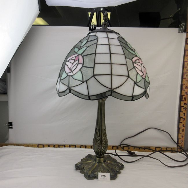 Current Bid: $14.00 [Refresh Price]YOU WILL NEED TO REFRESH THIS PAGE TO SEE UPDATED BID (Log in and this will update automatically) You must LOG IN or REGISTER to see this full page auction listing and bid. Auction is Over Winning Bid Amount: $14.00 **Lot Details: (125j) - A very nice vintage stained glass lamp with Art Nouveau style metal base. Tested and working. Log in to add this lot to your watch list or place a bid |