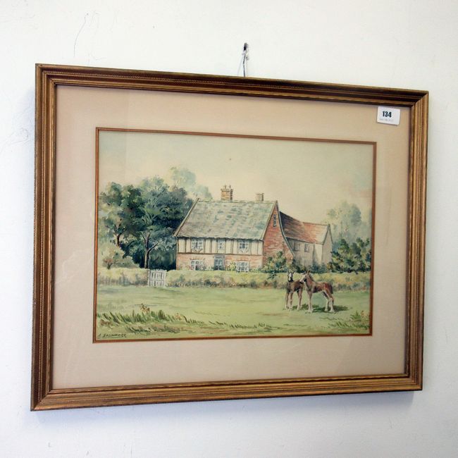 Current Bid: $20.00 [Refresh Price]YOU WILL NEED TO REFRESH THIS PAGE TO SEE UPDATED BID (Log in and this will update automatically) You must LOG IN or REGISTER to see this full page auction listing and bid. Auction is Over Winning Bid Amount: $20.00 **Lot Details: (134j) - An incredible original watercolour of two foals and what appears to be an English farmhouse. A very well done piece by a highly skilled artist. Signed in lower left corner A. Saunders. Appears to be pre-1950, possibly an antique. Nicely framed, Log in to add this lot to your watch list or place a bid |