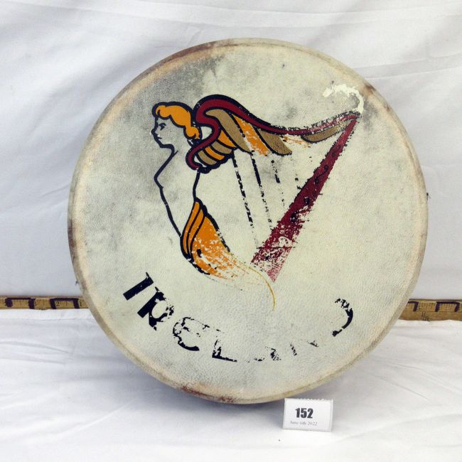 Current Bid: $19.00 [Refresh Price]YOU WILL NEED TO REFRESH THIS PAGE TO SEE UPDATED BID (Log in and this will update automatically) You must LOG IN or REGISTER to see this full page auction listing and bid. Auction is Over Winning Bid Amount: $19.00 **Lot Details: (152j) - A great soiundign vintage hand drum that has a worn Ireland Harp logo on the skin Log in to add this lot to your watch list or place a bid |