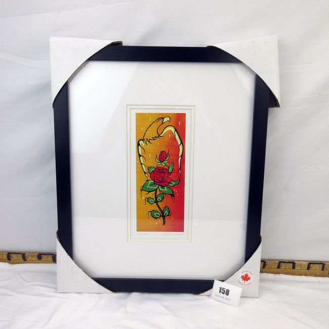 Current Bid: $21.33 [Refresh Price]YOU WILL NEED TO REFRESH THIS PAGE TO SEE UPDATED BID (Log in and this will update automatically) You must LOG IN or REGISTER to see this full page auction listing and bid. Auction is Over Winning Bid Amount: $21.33 **Lot Details: (158j) - Authentic artwork Eagle & Rose by Ojibwe artist William Monague, matted and framed. 12" x 14.5", new Log in to add this lot to your watch list or place a bid |
