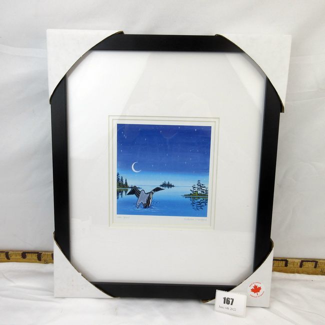 Current Bid: $26.33 [Refresh Price]YOU WILL NEED TO REFRESH THIS PAGE TO SEE UPDATED BID (Log in and this will update automatically) You must LOG IN or REGISTER to see this full page auction listing and bid. Auction is Over Winning Bid Amount: $26.33 **Lot Details: (167j) - Spirit Of The Loon authentic artwork by Ojibwe artist William Monague. Matted and framed 12" x 14.5", new Log in to add this lot to your watch list or place a bid |