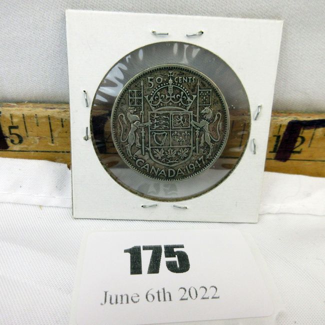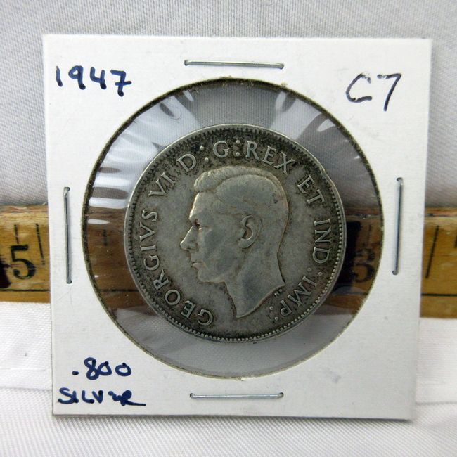 Current Bid: $11.07 [Refresh Price]YOU WILL NEED TO REFRESH THIS PAGE TO SEE UPDATED BID (Log in and this will update automatically) You must LOG IN or REGISTER to see this full page auction listing and bid. Auction is Over Winning Bid Amount: $11.07 **Lot Details: (175j) - Canada King George VI 50 Cent, 1947 (curved 7), 80% silver, low mintage Log in to add this lot to your watch list or place a bid |