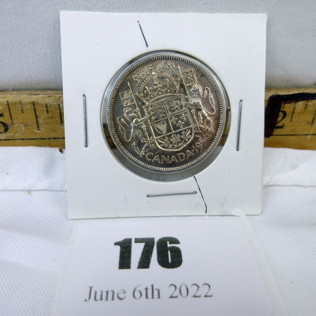 Current Bid: $18.45 [Refresh Price]YOU WILL NEED TO REFRESH THIS PAGE TO SEE UPDATED BID (Log in and this will update automatically) You must LOG IN or REGISTER to see this full page auction listing and bid. Auction is Over Winning Bid Amount: $18.45 **Lot Details: (176j)- Canada Queen Elizabeth II 50 Cent, 1956, 80% silver Log in to add this lot to your watch list or place a bid |