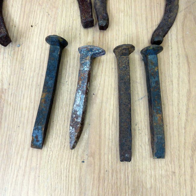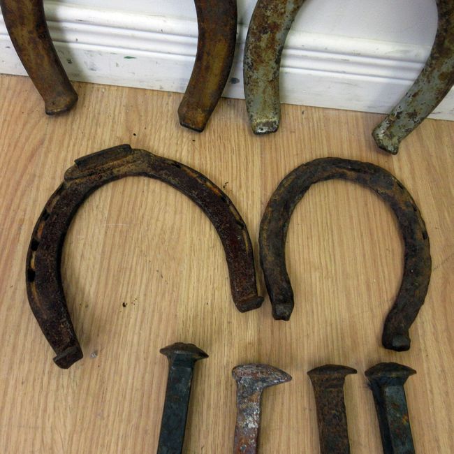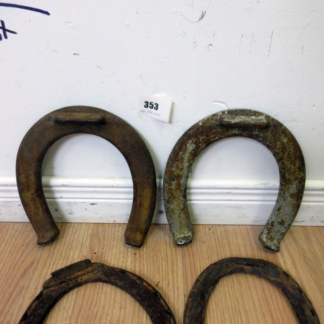 Current Bid: $9.00 [Refresh Price]YOU WILL NEED TO REFRESH THIS PAGE TO SEE UPDATED BID (Log in and this will update automatically) You must LOG IN or REGISTER to see this full page auction listing and bid. Auction is Over Winning Bid Amount: $9.00 **Lot Details: (353q) - 4 Lucky Horseshoes! 2 marked Toronto, Ont "Official Drop Forged" marked A&B and 2 very old horseshoes. 4 great railroad spikes with 2 clearly marked HCP Log in to add this lot to your watch list or place a bid |
